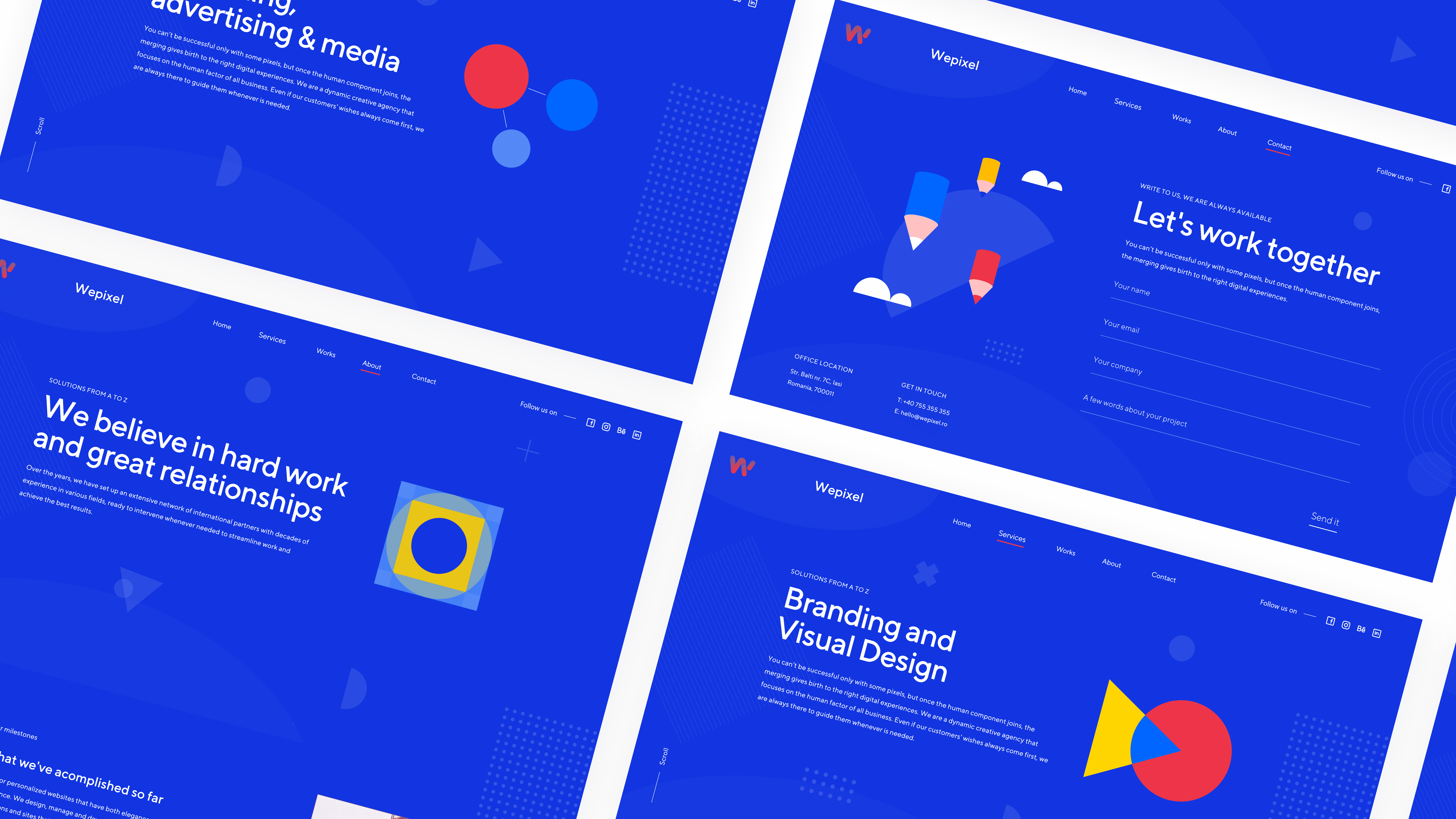 Wepixel is a young and ambitious creative agency from Iasi, Romania, that provides services ranging from web development to digital marketing. As Visual & Web designer, I was tasked to design a mobile-first website, accompanying it with the necessary visuals, such as iconography, or illustrations, but also thinking and providing models of interaction between pages or elements.
